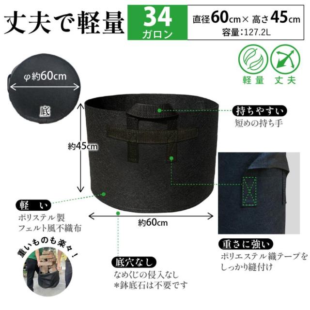 不織布プランター 34ガロン 3個 60x45 20号 特大 プランター 不織布ポット