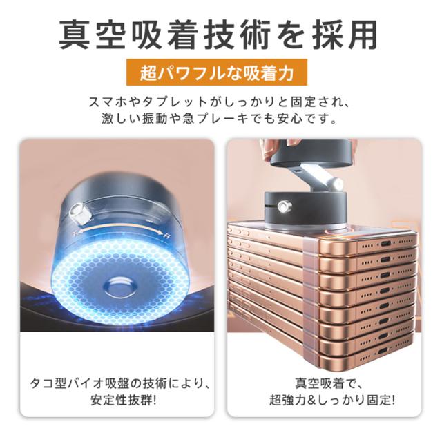 マグネットと真空吸着を組み合わせたため、最大1.5kgまで耐える強力な吸着力で、スマートフォンの落下も心配ありません。