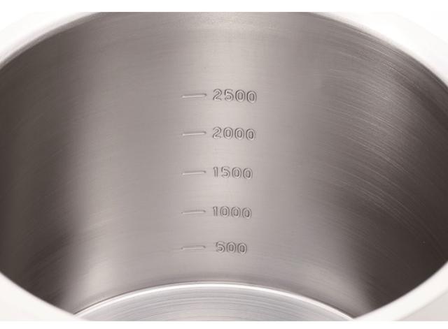 クッキングヒータ用調理器具 適合品 Sg(CH・IH)。200VのIHクッキングヒータで使用可能。蓋が転がりにくいツマミ形状。目盛付(500・1000・1500・2000・2500)