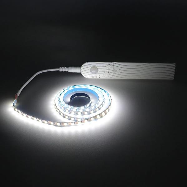 LED内蔵バッテリー(電池は付属しません)赤外線センサーライトが近づくと点灯、長さ1M-5M、2835個のビーズ付きライト、30個/メートル、人体感知機能付き、180個° 超広角、温白色と白色からお選びいただけます。