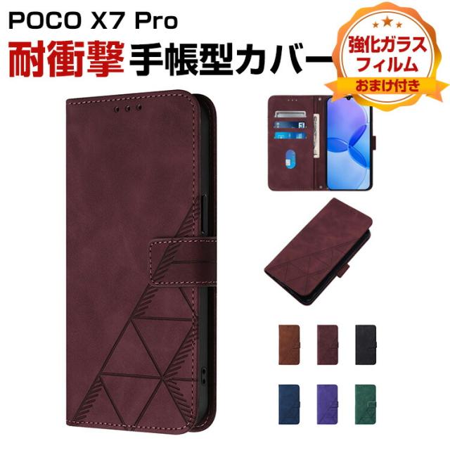 Xiaomi シャオミ POCO X7 プロ 5G POCO X7 Pro ケース 耐衝撃 カバー ケース 手帳型 財布型 TPU&PUレザー おしゃれ 汚れ防止 スタンド機能 便利 カード収納 カッコいい 人気 便利性の高い スマホ 手帳型カバー CASE 強化ガラスフィルム おまけ付き