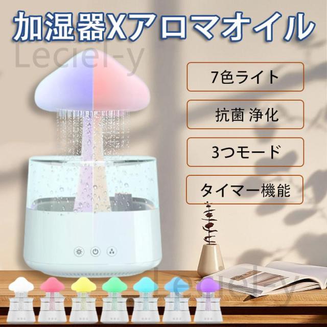 加湿器 雨雲加湿器 卓上 アロマ 上から給水 除菌 静音 加湿機 超音波式 USB充電式 タイマー 7色LEDライト 3つモード コンパクト 省エネ 乾燥/花粉症対策 家庭用
