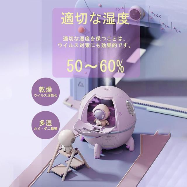 加湿器 超音波式加湿器 卓上 静音 加湿機 超音波式 USB充電式 7色LEDライト 宇宙人 おもちゃ コンパクト 省エネ 乾燥/花粉症対策 家庭用 秋冬 プレゼント