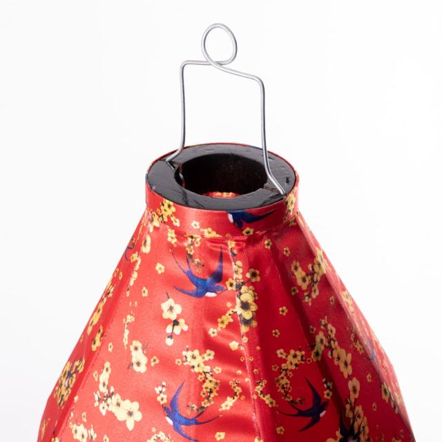 【5個セット】華やかな柄入り ベトナム伝統のホイアン・ランタン〔提灯〕 - ティアドロップ〔燕と黄梅模様〕 / セット、レッド、ホイアンランタン、ランプ、提灯、インテリア、ランプシェード インドとアジア雑貨 【インドとアジアン雑貨