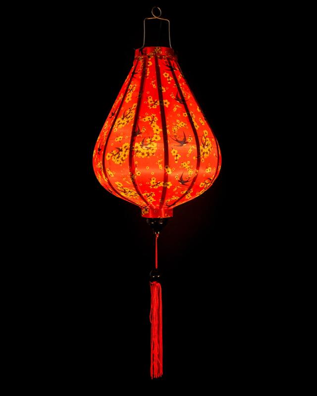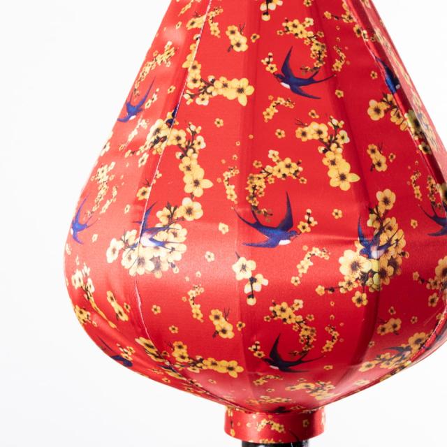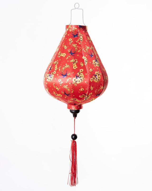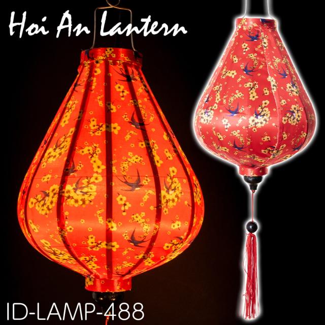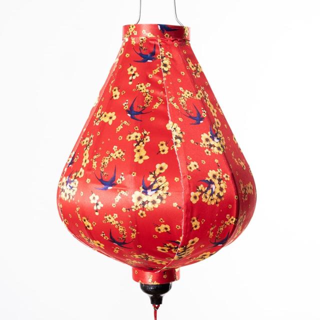 【送料無料】 【5個セット】華やかな柄入り ベトナム伝統のホイアン ランタン〔提灯〕 ティアドロップ〔燕と黄梅模様〕 / レッド ホイアンランタン ランプ インテリア アジアン ランプシェード エスニック インド 雑貨