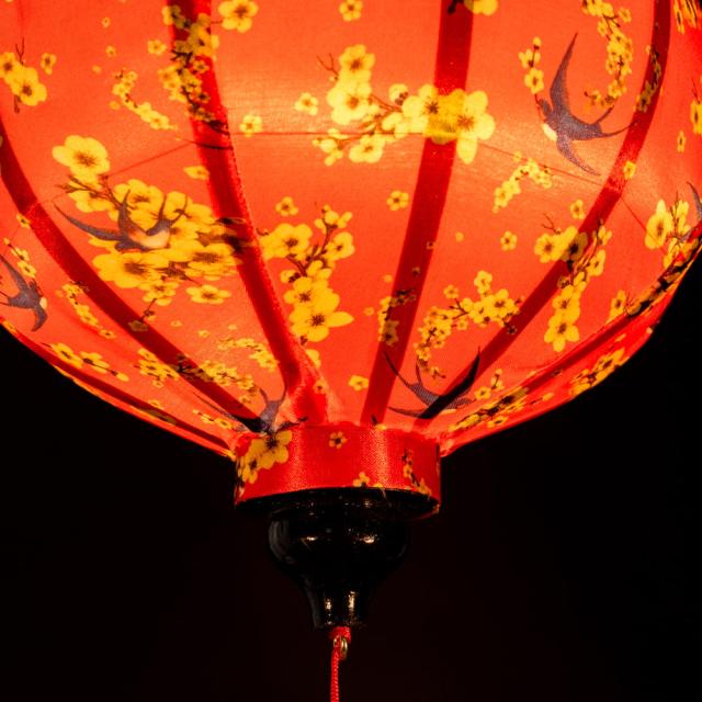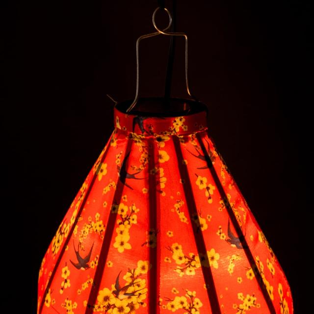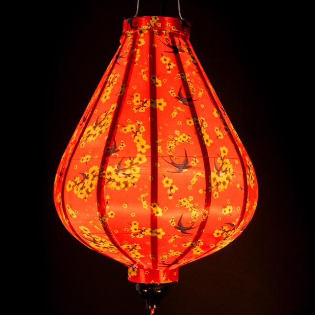 【5個セット】華やかな柄入り ベトナム伝統のホイアン・ランタン〔提灯〕 - ティアドロップ〔燕と黄梅模様〕です。セットでお得になっています♪