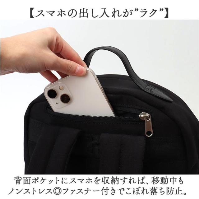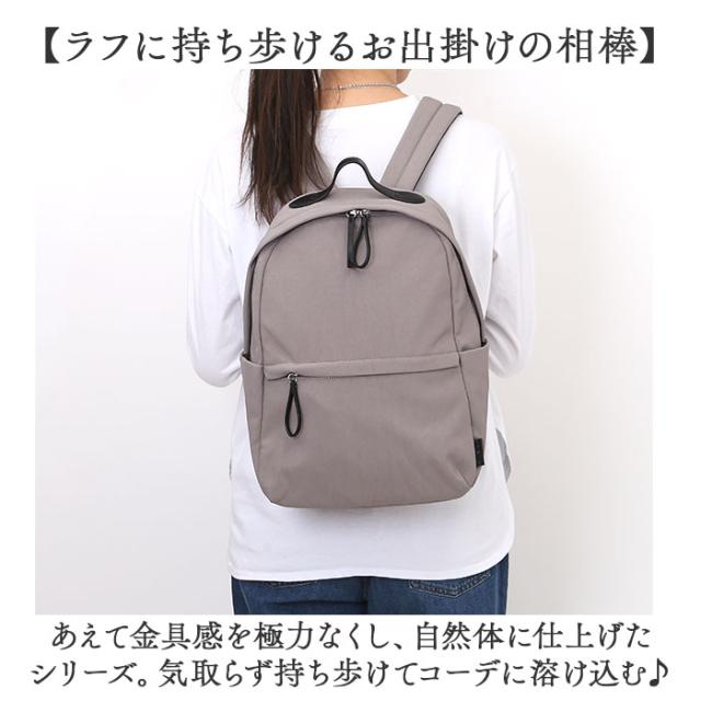 | 商品説明 | 【ナチュラルで”らく”を意識】 ・色んなシーンで素敵に快適!Legato Largoナチュらくバッグ10ポケットリュック。 【ラフに持ち歩けるお出掛けの相棒】 ・あえて金具感を極力なくし、自然体に仕上げたシリーズ。気取らず持ち歩けてコーデに溶け込む♪ 【サッと指を掛けて開閉が”ラク”】 ・ファスナー引き手をループ状に。急いでいる時も引き手を取りやすく、手間取らない! (※1)背面ポケットの引き手はループなしです。 【雨の日でもお手入れが”ラク”】 ・丈夫なナイロン素材に、汚れや水滴を弾きやすい撥水加工済み。お手入れも拭き取るだけで簡単。 (※2)完全防水ではありません。 【スマホの出し入れが”ラク”】 ・背面ポケットにスマホを収納すれば、移動中もノンストレス◎ファスナー付きでこぼれ落ち防止。 【ガバっと開くダブルファスナー】 ・左右どちらからもオープン。中身を確認しやすく、荷物の出し入れがスムーズ。 【A4対応でざっくりひとまとめ】 ・A4がすっぽり。かさばらないフォルムながら、お出掛けに必要な物が1つにすっきり。 【迷子知らず◎充実の10ポケット】 ・背面ポケット含め、合計10個のポケットとDカン。用途に応じて使い分けて整頓。 【負担をかけず背負い心地軽やか】 ・背面とショルダーにクッションを入れ、疲れを軽減。どちらもムレにくいメッシュ仕様。 【キャリーオンできて移動もスマート】 ・背面の面ファスナー式テープベルトを、キャリーのハンドルに差し込めるキャリーオンタイプ。 【お気に入りを選べるカラー】 ・ベーシックや差し色など、落ち着きのあるカラーをラインナップ。飽きが来ず、長く愛用◎ 【ポケット仕様】 ・内側:オープンポケット×3、ペンポケット×1、ボトルポケット×1 ・前面:ファスナーポケット×1(内側にオープンポケット×1) ・サイド:オープンポケット×2(片側にDカン付き) ・背面上部:ファスナーポケット×1(スマホ収納) |