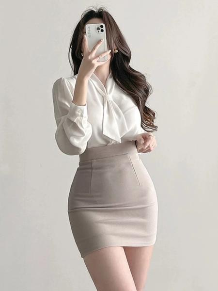 白と黒のプロフェッショナルミニスカート女性のハイウエストボディコンスカート韓国スタイル通勤ジッパースプライスショートスカート