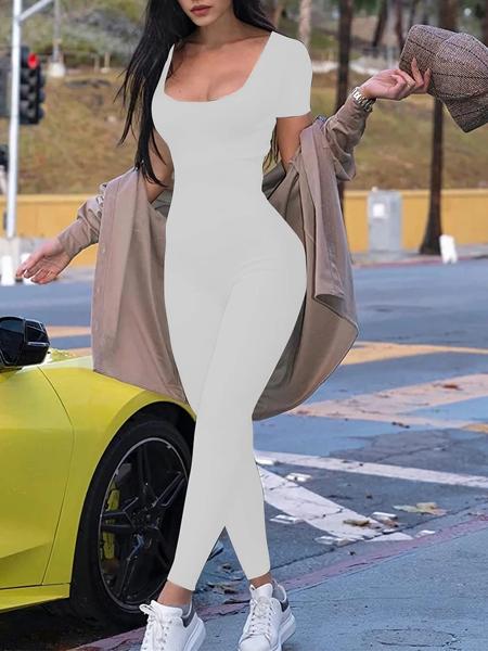 女性用半袖ジャンプスーツ,単色,肌に密着したジャンプスーツ,スポーツ,フィットネス,カジュアルなアクティビティ,ストリートウェア,ダンガリー,ファッショナブル