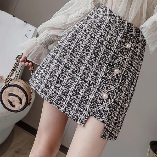 Lucyever-レディースヴィンテージチェック柄ツイードスカート,韓国ハイウエスト,オフィスミニスカート,厚手のジッパー,aラインウールスカート,秋冬
