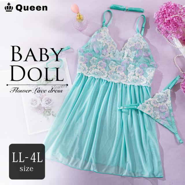 ★☆ベビードール 大きいサイズ ランジェリー キャミソール 下着 スリップ ショーツセット ナイトウェア 花柄 インナー レディース LL 3L 4L☆★