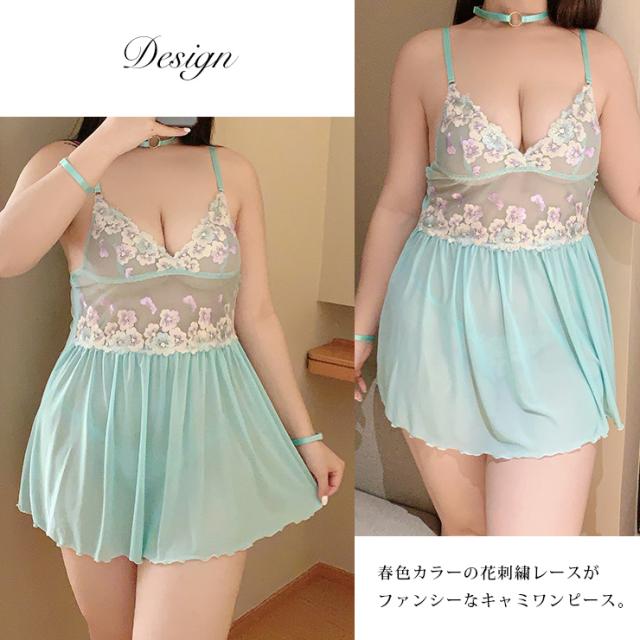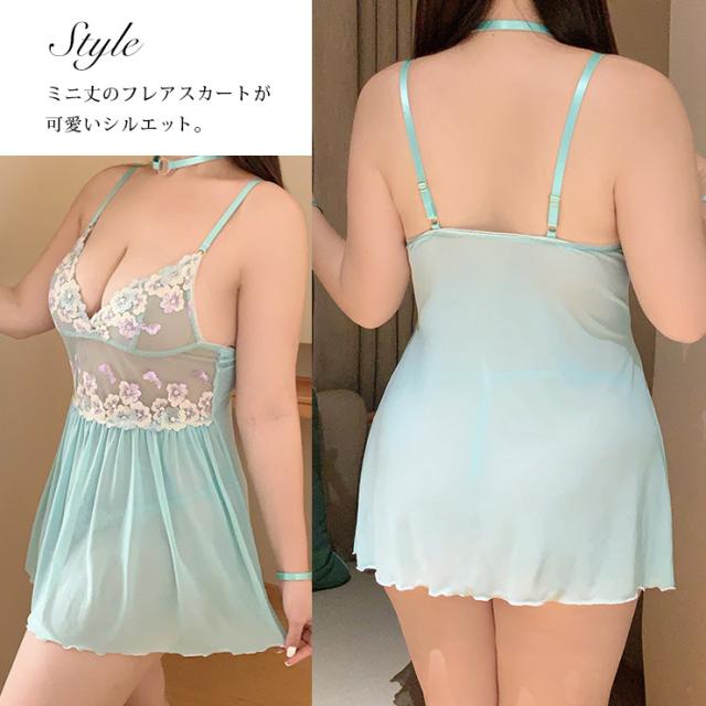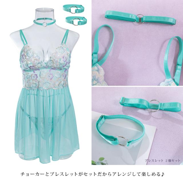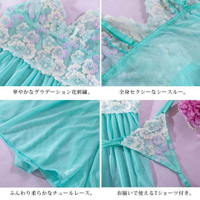 オーロラ刺繍フラワーベビードール(4点セット)
