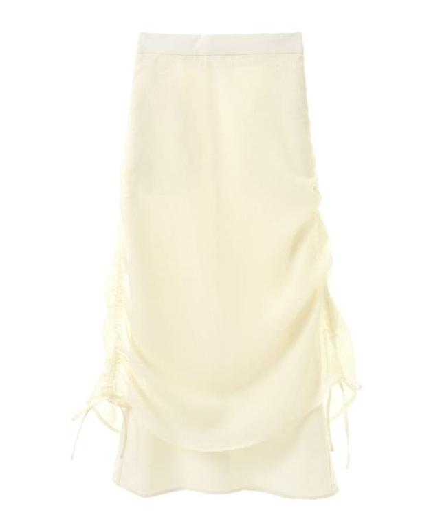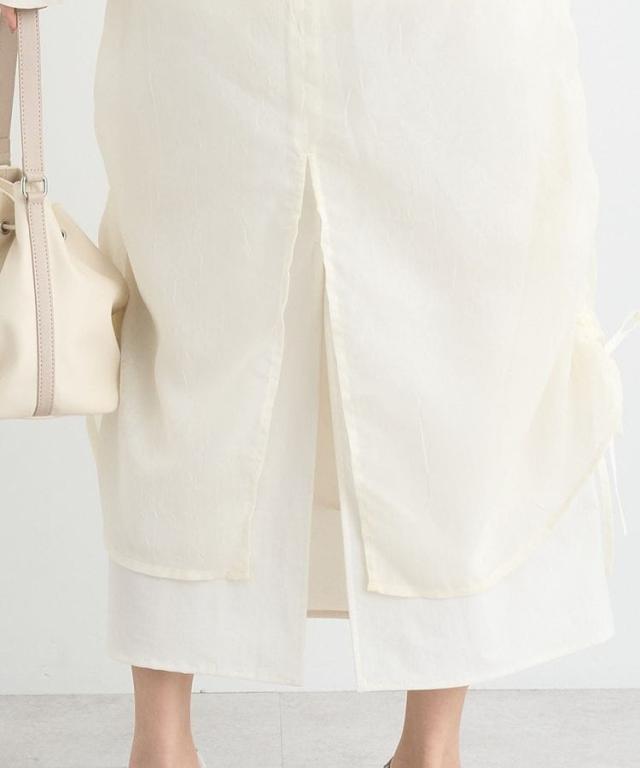 シンプルなトップスを合わせるだけで着映えするレイヤードスカート。柔らかなシフォン部分はサイドのドロストコードを絞ることで一気に今年らしい雰囲気をプラスしてくれるデザインです。正面からはきちんと感を出しつつ、着心地もカバーするウエスト後ろゴム仕様も魅力のポイント。1枚ではもちろん、デニムをレイヤードするとよりトレンドスタイルを楽しんでいただけます。透け感[ややあり]