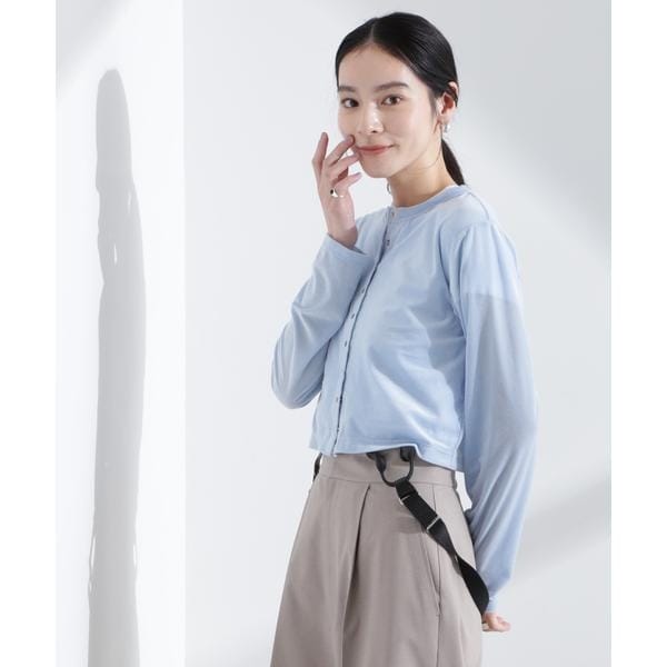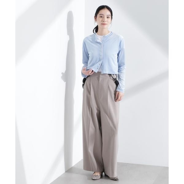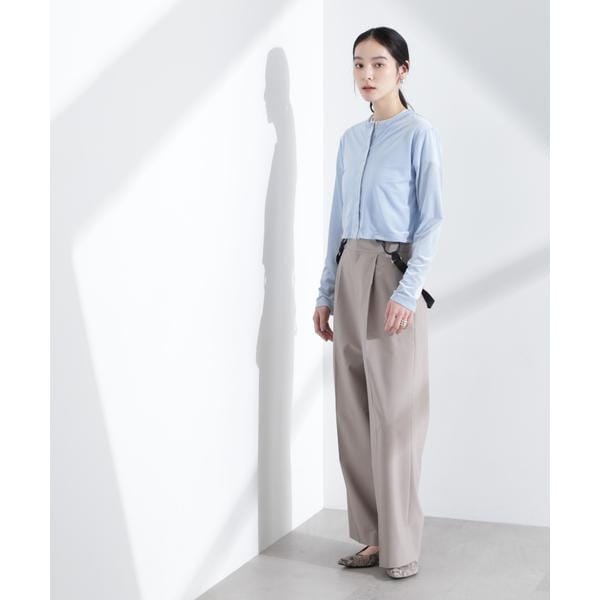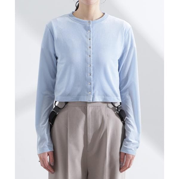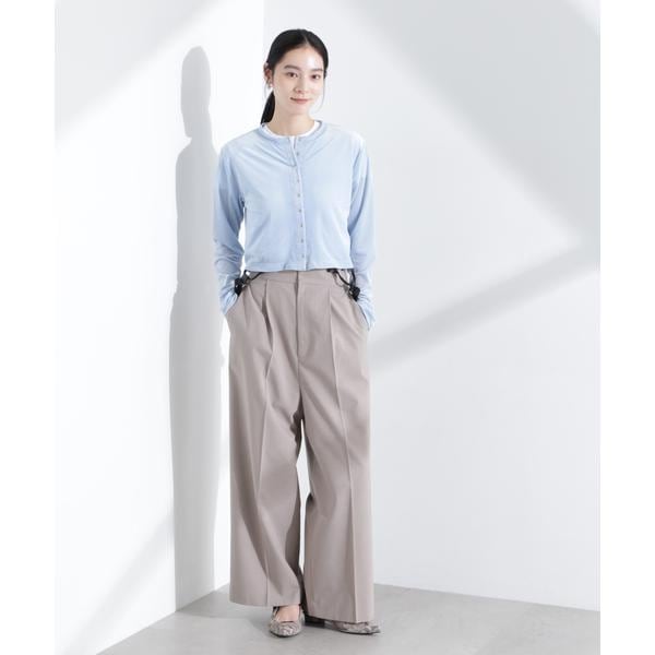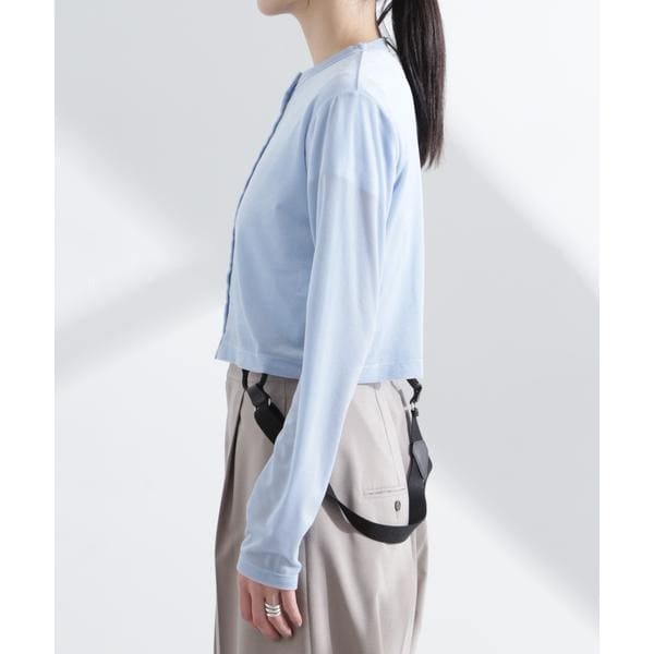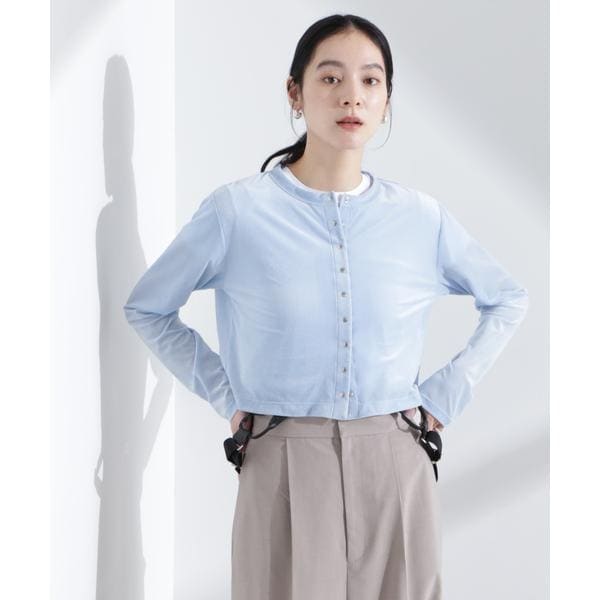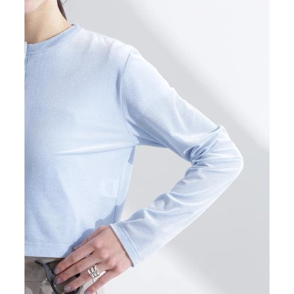 シアーベロア素材と今季らしいクロップド丈が特徴のカーディガン。首元は詰まり過ぎず、インナーの衿元とのバランスが取れる絶妙な空き具合に設計。旅行先にも持ち運びしやすい季節の変わり目に頼れる一枚です。