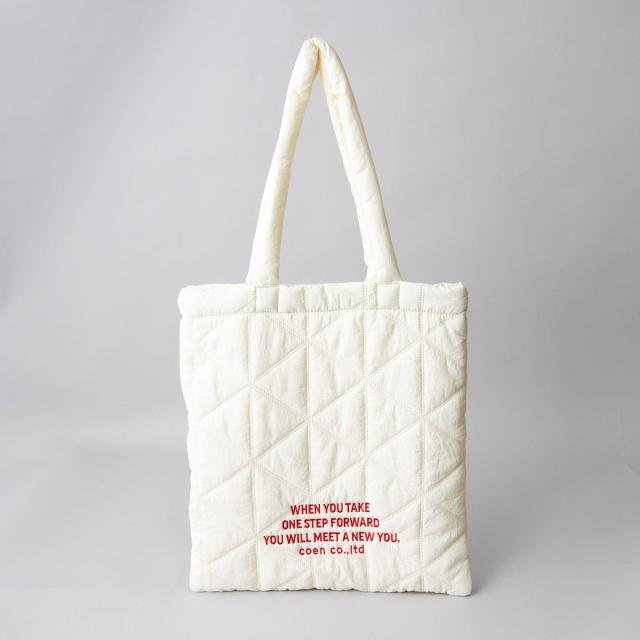 コーエン(coen)/ロゴ刺繍 幾何柄 キルトトートバッグ