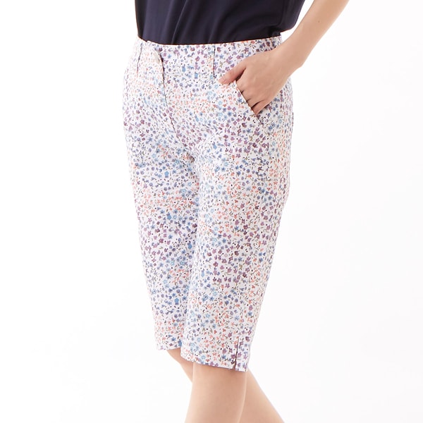 膝上丈のショートパンツ。水彩画タッチの小花柄プリントです。
