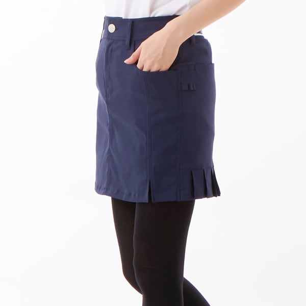 ストレッチ性に富んだ撥水素材を使用。ジャガードのウエストリブを取りいれたスポーティーなデザイン。裾スリットと後ろプリーツで女性らしい魅力をプラス。