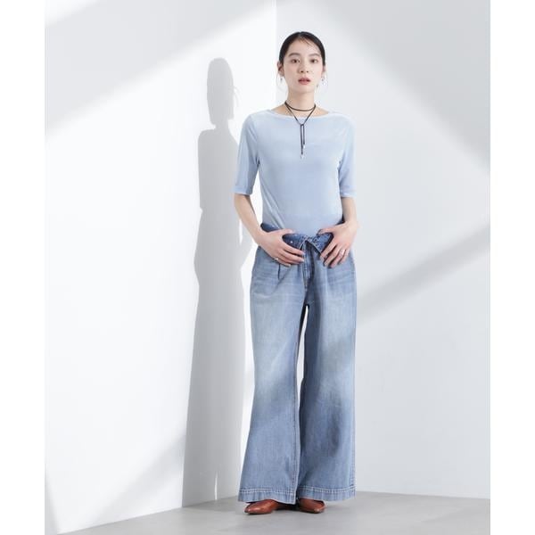 ふわふわタッチのベロアならではの上品な光沢感が魅力のTシャツ。時期長く着られて半袖に比べややきちんと感も感じられる5分丈袖のバッグオープンデザイン。ギラ付き感もなくきれいめカジュアル仕上がりで、他のアイテムと合わせる際にも存在感がある一枚です。