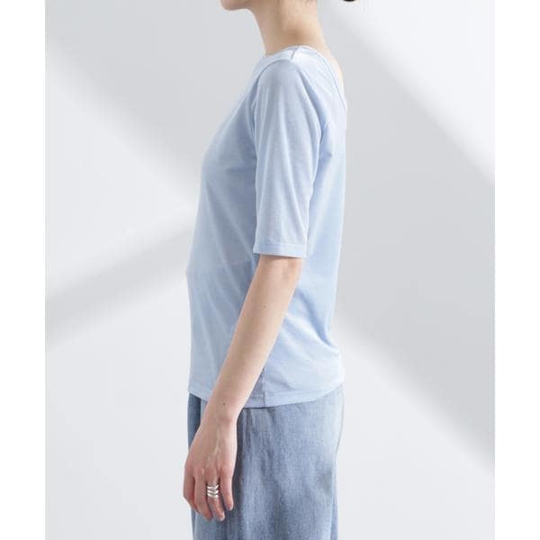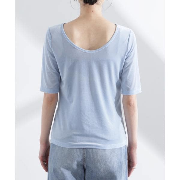 シアーベロアバックオープン5分袖Tシャツ