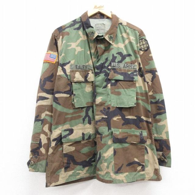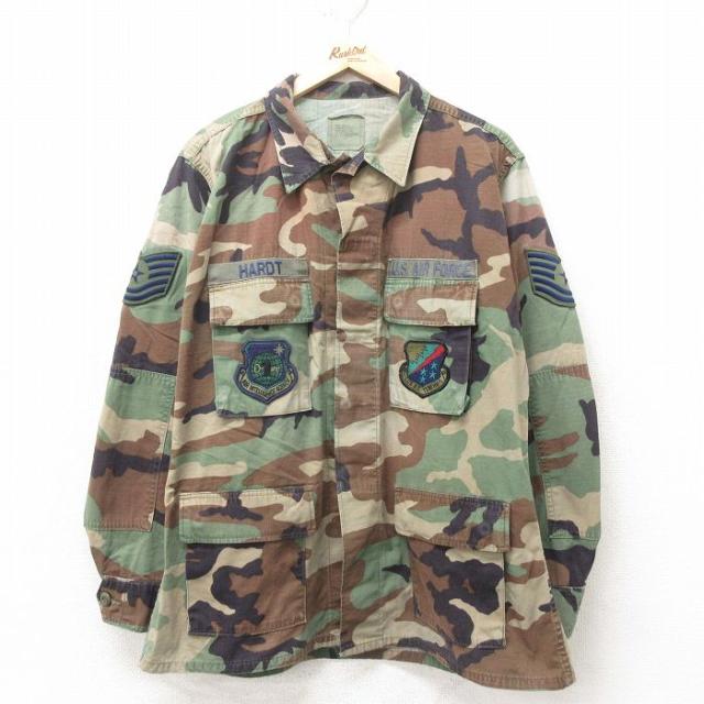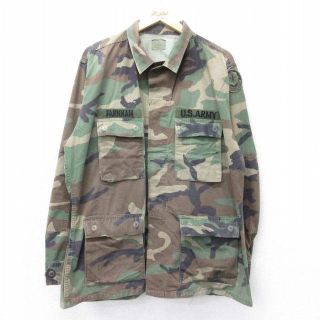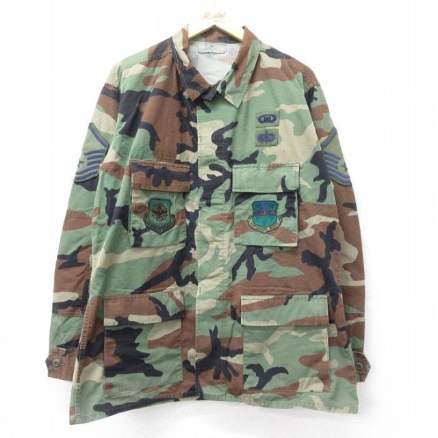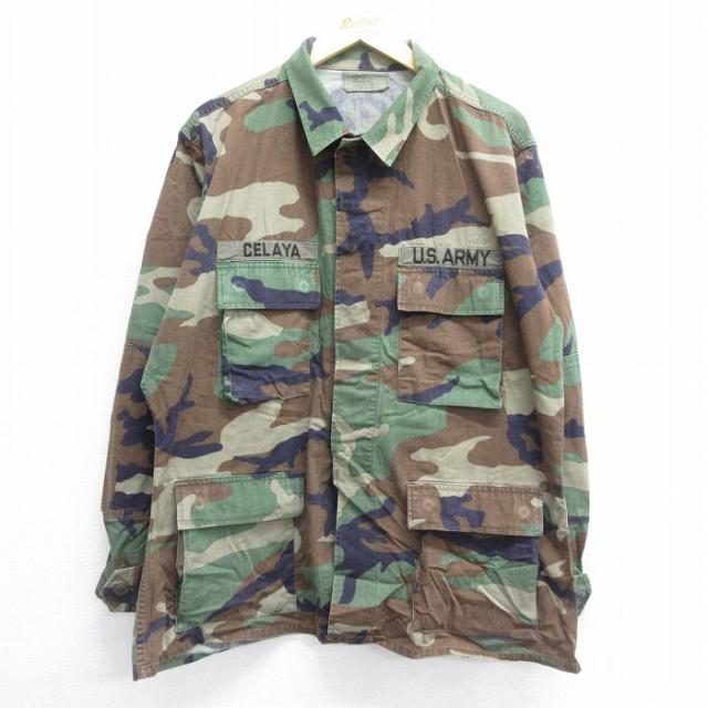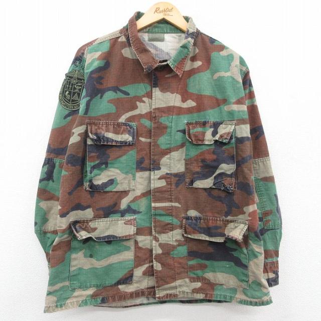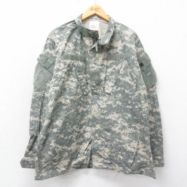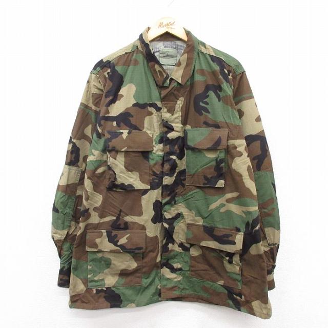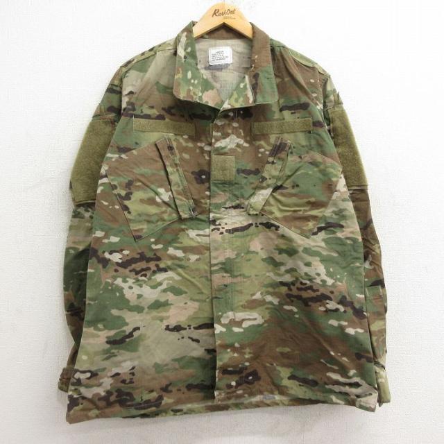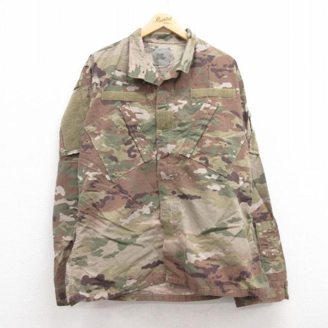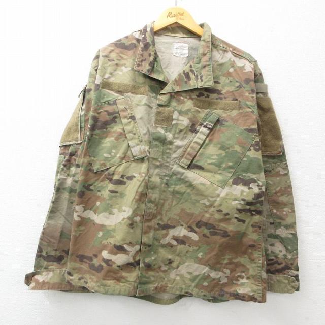 古着 長袖 ミリタリー ジャケット メンズ リップストップ マルチカムカモ 大きいサイズ ロング丈 USA製 緑 グリーン 迷彩 XLサ 中古 古着