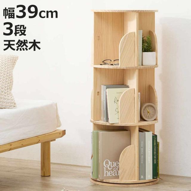 回転式 コミックラック 3段 幅39cm 108冊収納 天然木 簡単組立 ( 本棚 ラック 回転 タワー型 組み立て簡単 回転ラック 木製 ブックラック マガジンラック 省スペース 三段 大容量 )