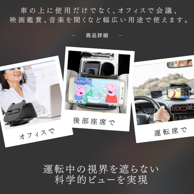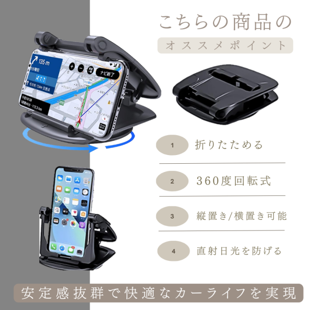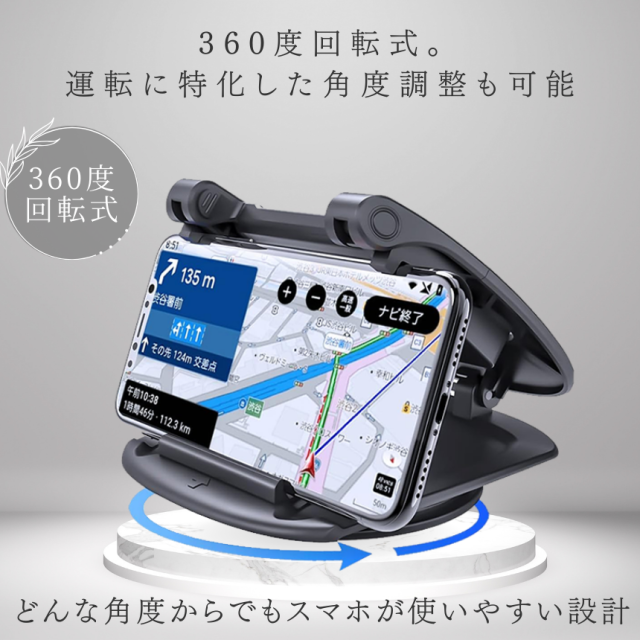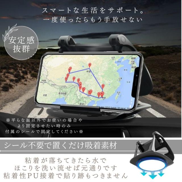 スマホホルダー 車 スマホスタンド 車載 車載用 携帯ホルダー 携帯スタンド 車用 クリップ ダッシュボード 卓上 縦置き 横置き 360度 回転式 強力 固定 粘着 汎用 カー用品 便利アイテム グッズ 車内 アクセサリー 車用品