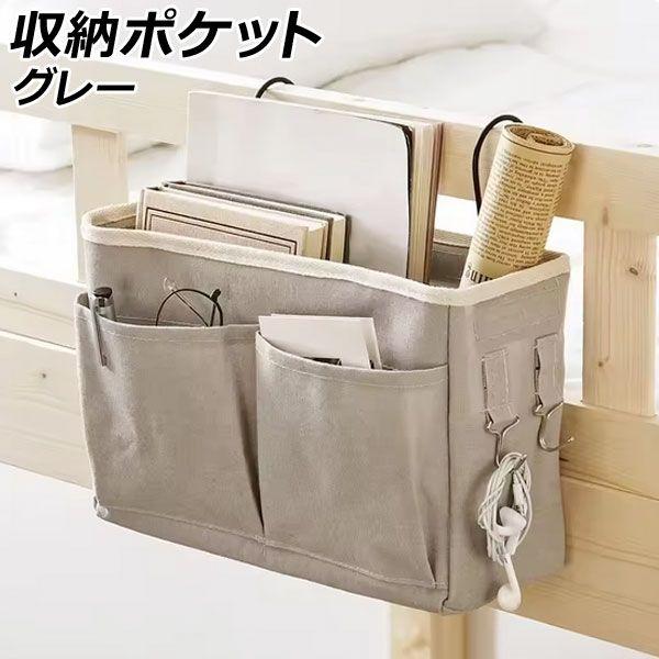 収納ポケット グレー ベッドサイドに引っ掛けて手軽に収納 AP-UJ1112-GY