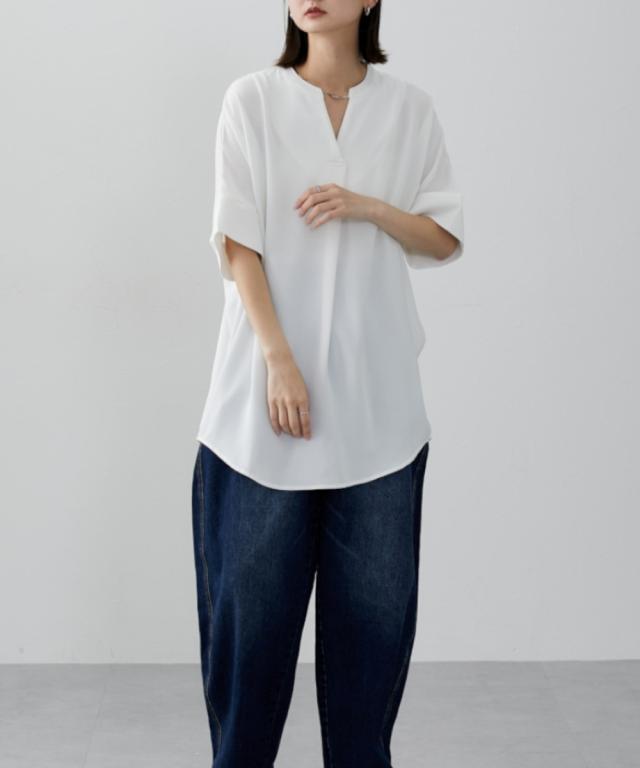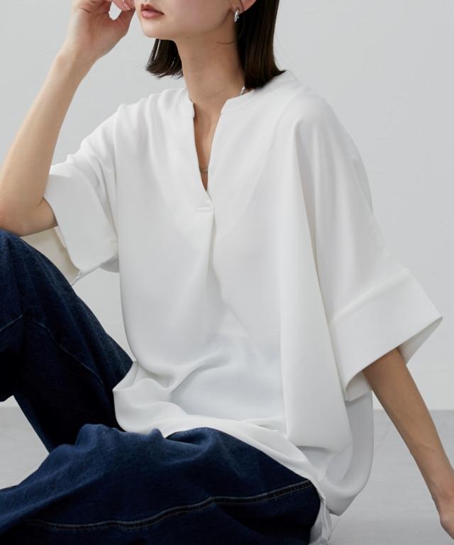 半端袖でロングシーズン着用可能 スキッパードルマンとろみブラウス ■デザイン ・落ち感のあるとろみ素材ブラウス×オーバーサイズなシルエットで、体型カバー効果 なブラウスです ・袖丈は半端袖で、春先のシーズンから、夏までロングシーズンで着用可能! ・スキッパーデザインで、デコルテラインをキレイに見せることができるので、お顔周りの華奢見せ効果も! ■素材 とろみ感があり、肌ざわりの良い布帛素材です。 ■おすすめのスタイリング キレイめのコーデからカジュアルなコーデまで幅広く対応可能なブラウスです ブラウスがオーバーサイズなので、パンツの着合わせがおすすめ ルーズなシルエットなので、全体的にルーズなコーデか、細身のボトムを着合わせてメリハリを出すか・・どちらもおすすめ ーーー明日ちょっと褒められる服ーーー 大人トレンドを意識したこだわりのアイテムと着こなしでアナタの毎日に輝きを。 ただシンプルできれいなだけじゃ物足りない。 カジュアルすぎず、スタイリッシュで大人の品性を感じる着こなしに。 そんな、こなれたオシャレを楽しむ女性に寄り添う、 新鮮なリアルクローズをご提案します。
