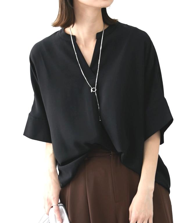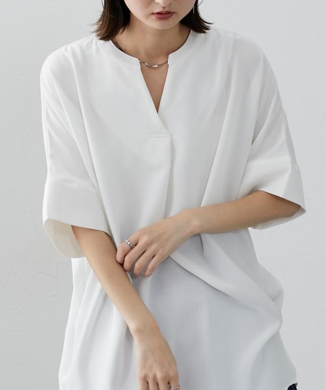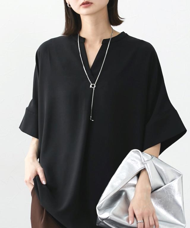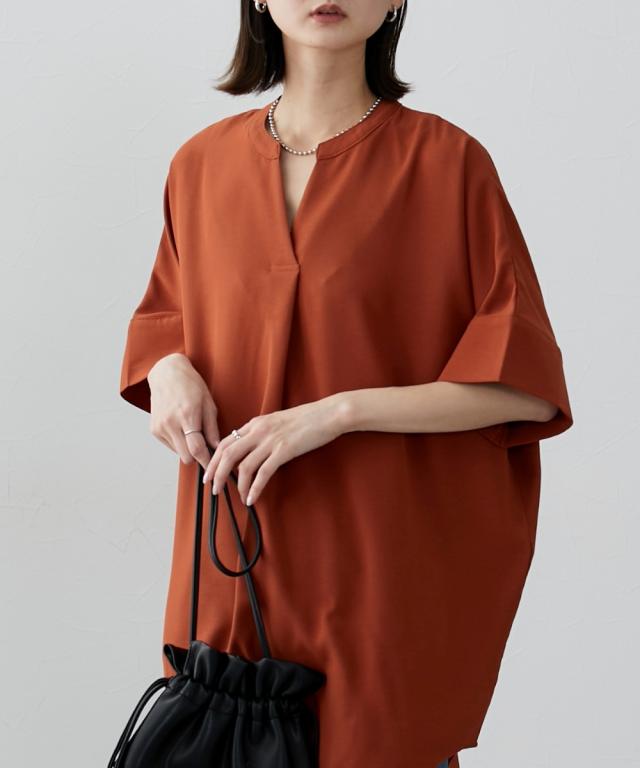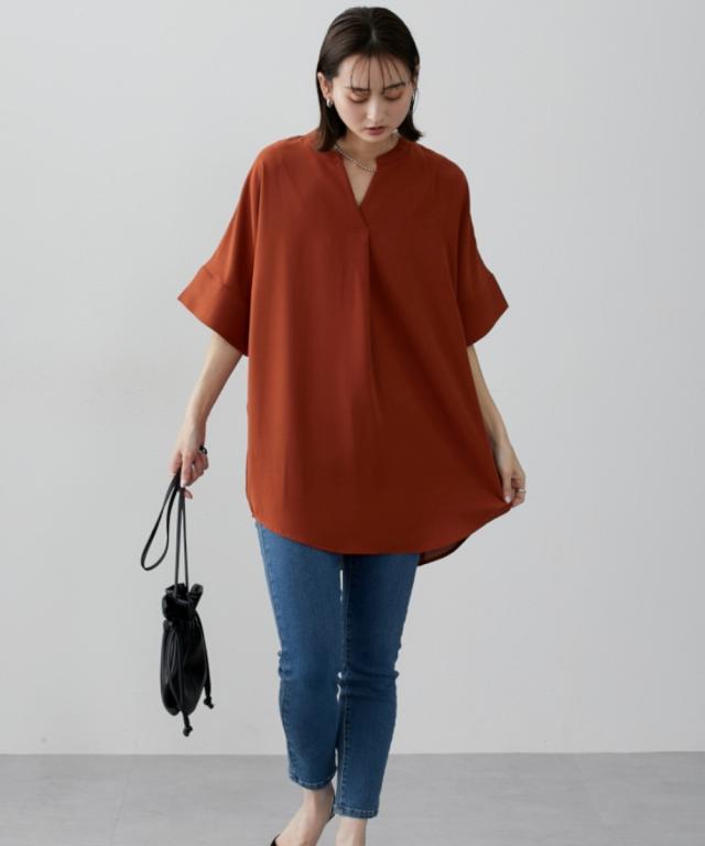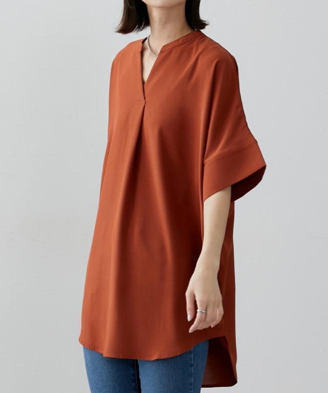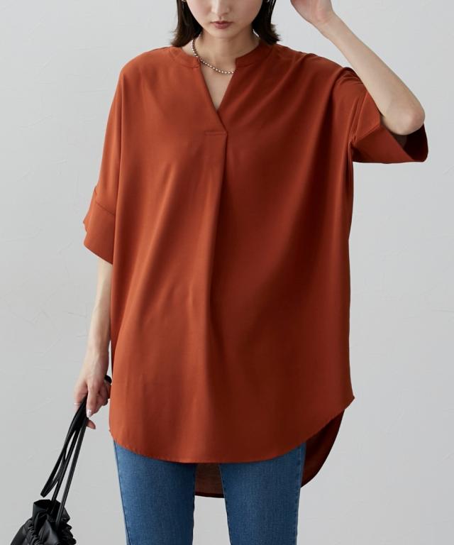 半端袖でロングシーズン着用可能 スキッパードルマンとろみブラウス ■デザイン ・落ち感のあるとろみ素材ブラウス×オーバーサイズなシルエットで、体型カバー効果 なブラウスです ・袖丈は半端袖で、春先のシーズンから、夏までロングシーズンで着用可能! ・スキッパーデザインで、デコルテラインをキレイに見せることができるので、お顔周りの華奢見せ効果も! ■素材 とろみ感があり、肌ざわりの良い布帛素材です。 ■おすすめのスタイリング キレイめのコーデからカジュアルなコーデまで幅広く対応可能なブラウスです ブラウスがオーバーサイズなので、パンツの着合わせがおすすめ ルーズなシルエットなので、全体的にルーズなコーデか、細身のボトムを着合わせてメリハリを出すか・・どちらもおすすめ ーーー明日ちょっと褒められる服ーーー 大人トレンドを意識したこだわりのアイテムと着こなしでアナタの毎日に輝きを。 ただシンプルできれいなだけじゃ物足りない。 カジュアルすぎず、スタイリッシュで大人の品性を感じる着こなしに。 そんな、こなれたオシャレを楽しむ女性に寄り添う、 新鮮なリアルクローズをご提案します。