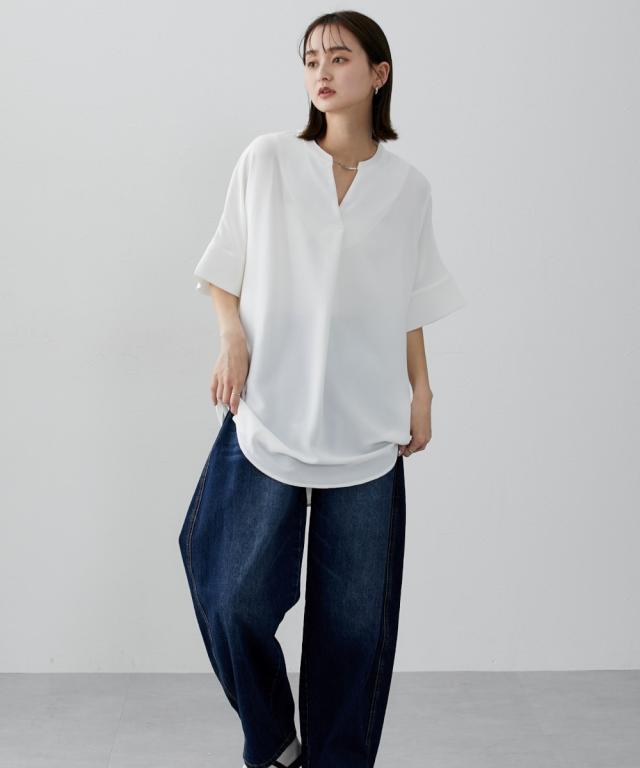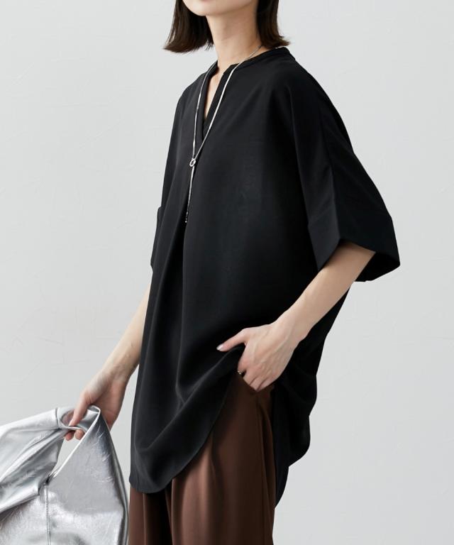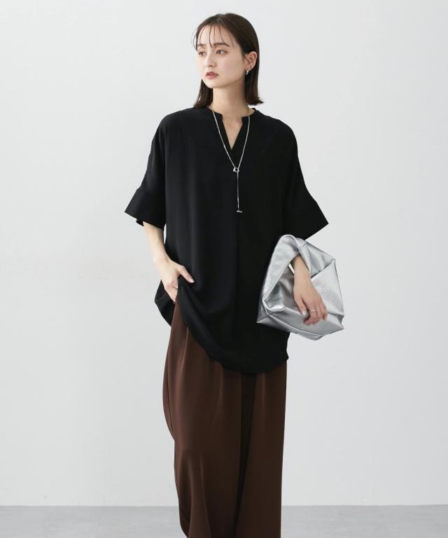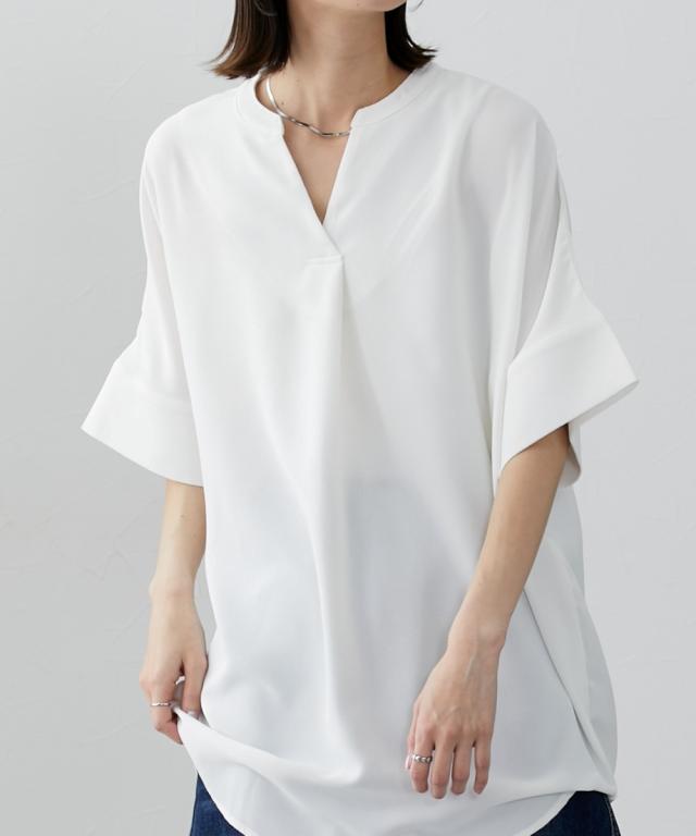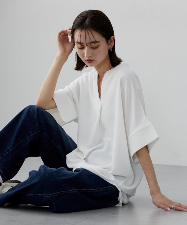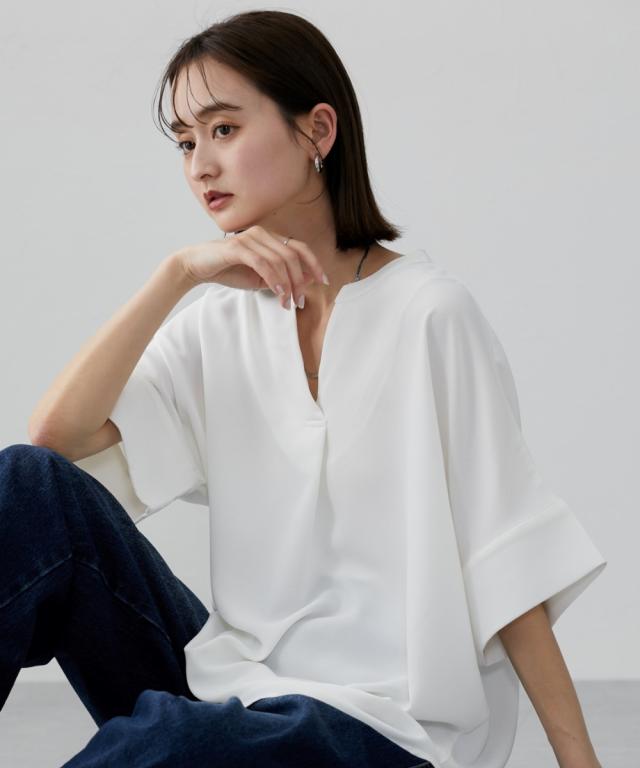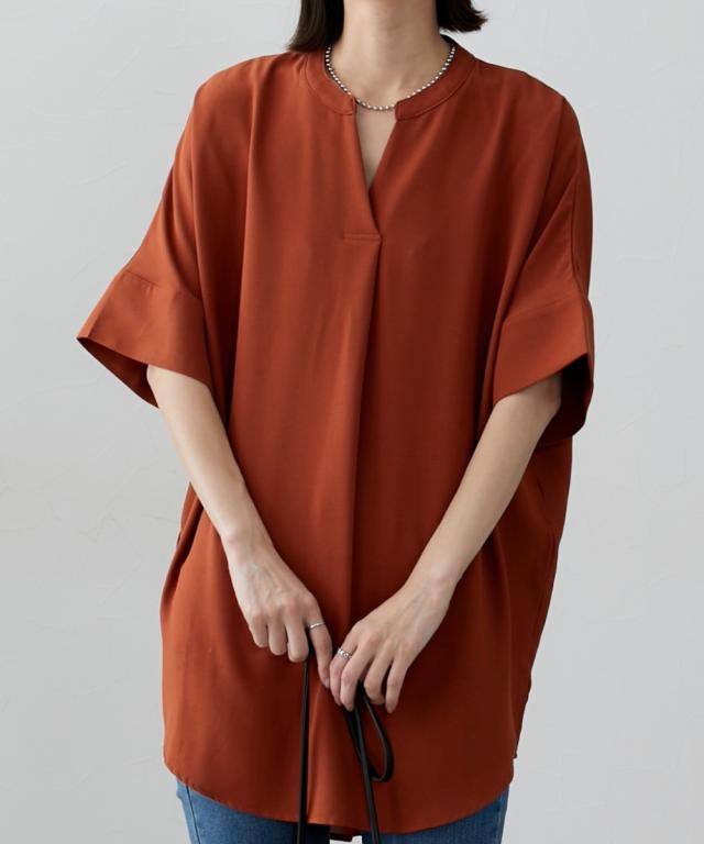 半端袖でロングシーズン着用可能 スキッパードルマンとろみブラウス ■デザイン ・落ち感のあるとろみ素材ブラウス×オーバーサイズなシルエットで、体型カバー効果 なブラウスです ・袖丈は半端袖で、春先のシーズンから、夏までロングシーズンで着用可能! ・スキッパーデザインで、デコルテラインをキレイに見せることができるので、お顔周りの華奢見せ効果も! ■素材 とろみ感があり、肌ざわりの良い布帛素材です。 ■おすすめのスタイリング キレイめのコーデからカジュアルなコーデまで幅広く対応可能なブラウスです ブラウスがオーバーサイズなので、パンツの着合わせがおすすめ ルーズなシルエットなので、全体的にルーズなコーデか、細身のボトムを着合わせてメリハリを出すか・・どちらもおすすめ ーーー明日ちょっと褒められる服ーーー 大人トレンドを意識したこだわりのアイテムと着こなしでアナタの毎日に輝きを。 ただシンプルできれいなだけじゃ物足りない。 カジュアルすぎず、スタイリッシュで大人の品性を感じる着こなしに。 そんな、こなれたオシャレを楽しむ女性に寄り添う、 新鮮なリアルクローズをご提案します。