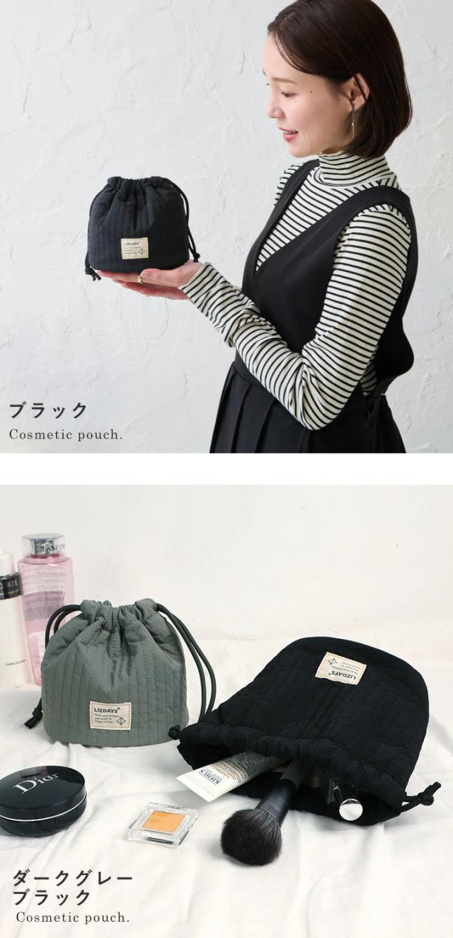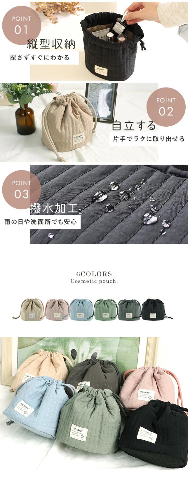 化粧ポーチ メイクポーチ 大容量 レディース コスメポーチ 小物入れ 巾着 ポーチ ナイロン キルティング 縦型 小さめ コンパクト かわいい おしゃれ LIZDAYS リズデイズ 大人 トラベルポーチ 旅行 使いやすい 持ち歩き 韓国 ヌビ【lz-79504】