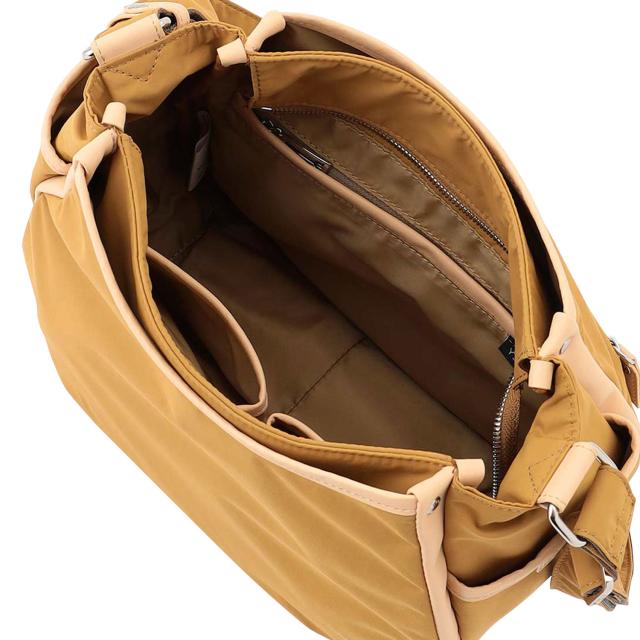 アーカイブからの復刻シリーズ。長年定番として人気のあったモデルを現在ライフスタイルに合わせ、機能性やサイズバランス、素材感を変えることによりアップデートしました。縦長のシルエットが新鮮で、収納スペースが多いため使いやすくなっています。開閉部のラインが少しラウンドしており、体に沿うようなデザインに。持った時にスマートに見えるバランスに仕上げています。メインにはタスラン糸を使用したナイロンタフタを使用しています。工場での製造工程において発生する繊維くずを回収したリサイクルナイロン糸を使用しており、環境にも配慮。撥水加工を施しているため急な雨でも安心です。光沢感を抑えたヴィンテージライクな風合いで、ナチュラルな印象に仕上げています。