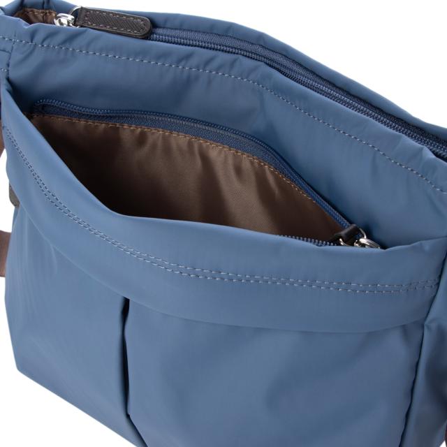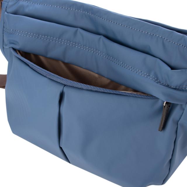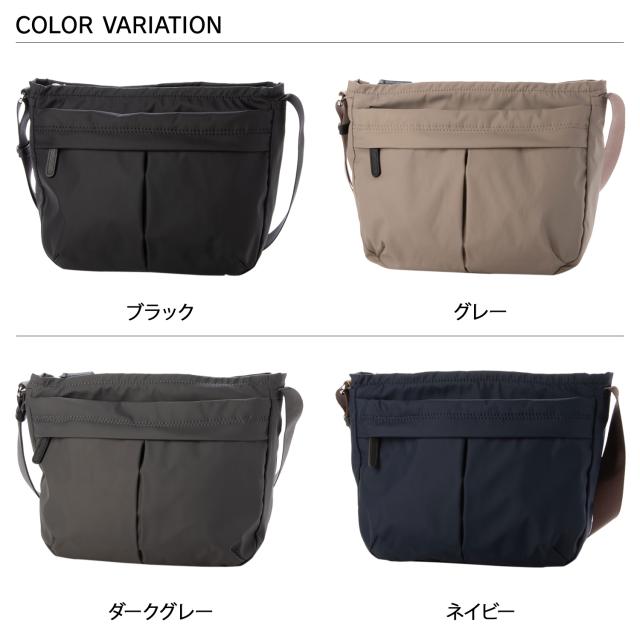 定番的な人気のシリーズのショルダーバッグに、新サイズが登場!メインの生地はレインコート等にも使用されるナイロンタフタを使用。高密度の撥水ナイロンタフタにメリヤスを貼り、手触りの良い柔らかい質感を表現しました。ポリエステルと比べて耐衝撃性に優れ、裂けづらくしわになりにくい素材です。軽量で使いやすく、デイリーからトラベルまで、さまざまなシーンに対応。仕切りポケットも多く、荷物の仕分けがしやすくなっているのもポイント。