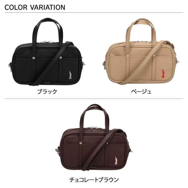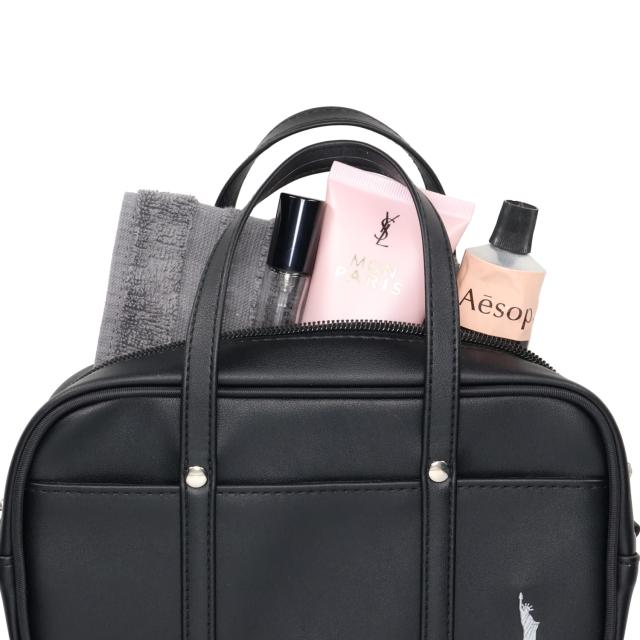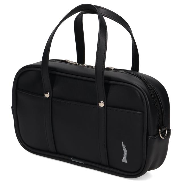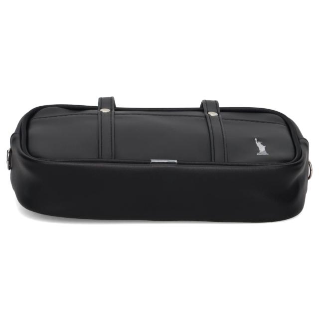 女神の刺繍が施されたイーストボーイのペンケース。手持ちでもったり、付属のストラップで肩掛けしたりすることができます。人気のスクールバッグをそのまま小さくしたデザインが特徴で、ポケットも豊富にあるので小物をしっかりわけて使うことができます。