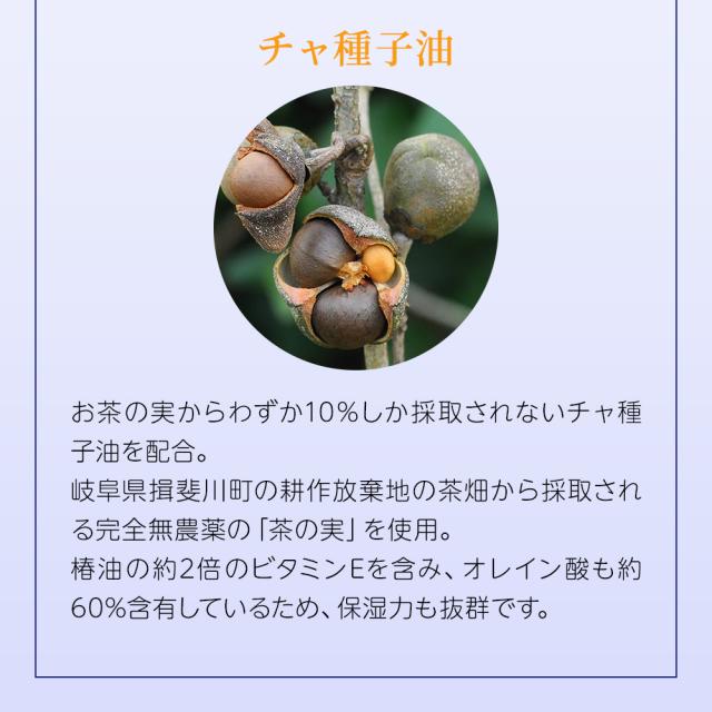 お茶の実からわずか10%しか採取されないチャ種子油を配合。