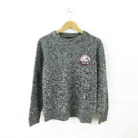 【中古】バナナセブン BANANA SEVEN ニット セーター 長袖 ワッペン 黒 M *T52 メンズ