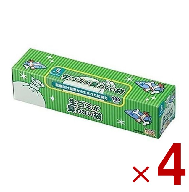 BOS ゴミ袋 生ごみ 生ゴミ 生ごみ袋 臭わない袋 100枚入り Sサイズ 生ゴミ用箱型 防臭袋 衛生 ビニール袋 使い捨て クリロン化成 4個