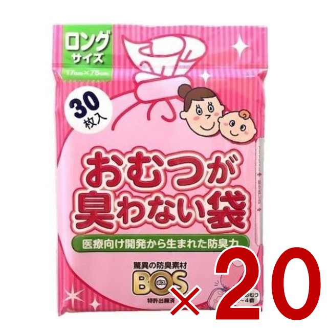 おむつが臭わない袋 BOS ベビー用 ロングサイズ 30枚入り 防臭袋 赤ちゃん オムツ 車 散歩 お出かけ クリロン化成 20個