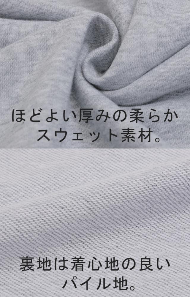 | 素材 | 本体:ポリエステル65% 綿35% リブ部分:綿65% ポリエステル30% ポリウレタン5% |