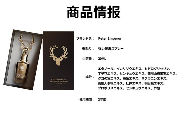 メンズ 元気強力スプレー、遅延スプレー、自信とプライド 長続き、持続力をアップに期待、鹿の角エキスと強力なハーブエッセンス配合、実感カ特化 夜の男性サポートスプレー 20 ml / 60回分 2本入り