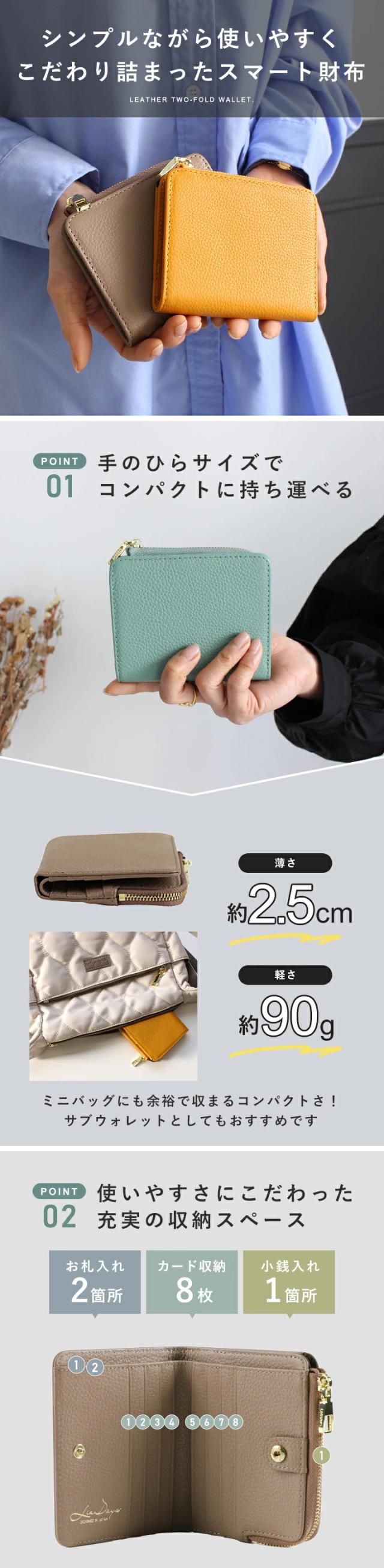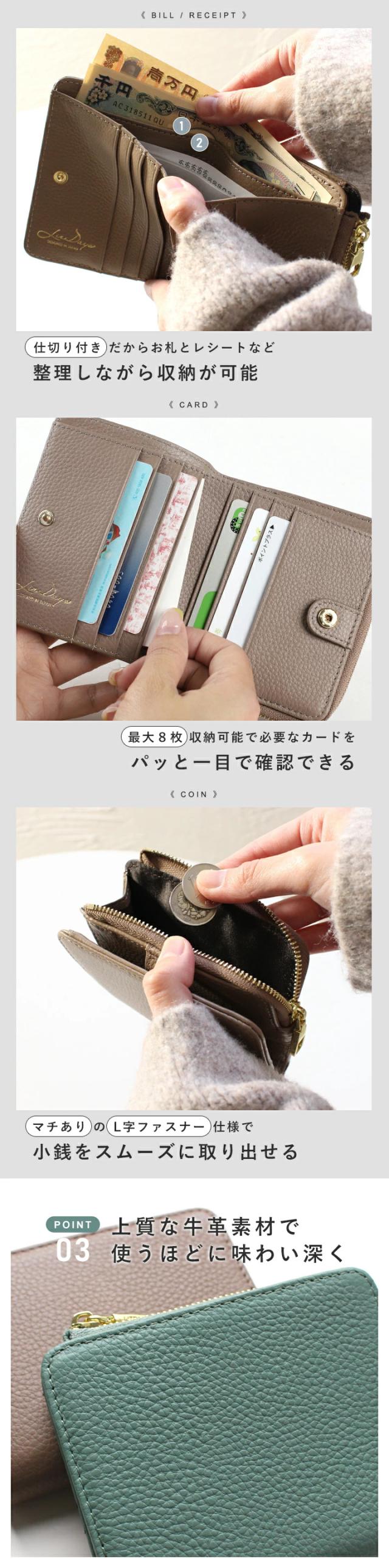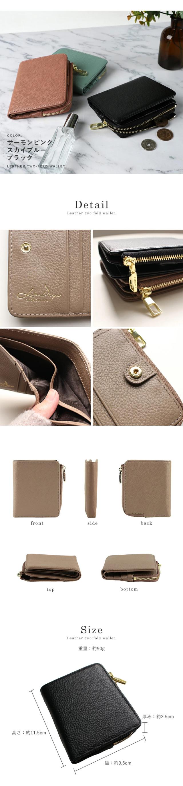 二つ折り財布 本革 レディース 財布 コンパクト L字ファスナー ミニ財布 小銭入れ カード入れ スキミング防止 磁気 おしゃれ LISDAYS リズデイズ シンプル ウォレット カードケース レザー 薄型 使いやすい プレゼント【lz-65127】