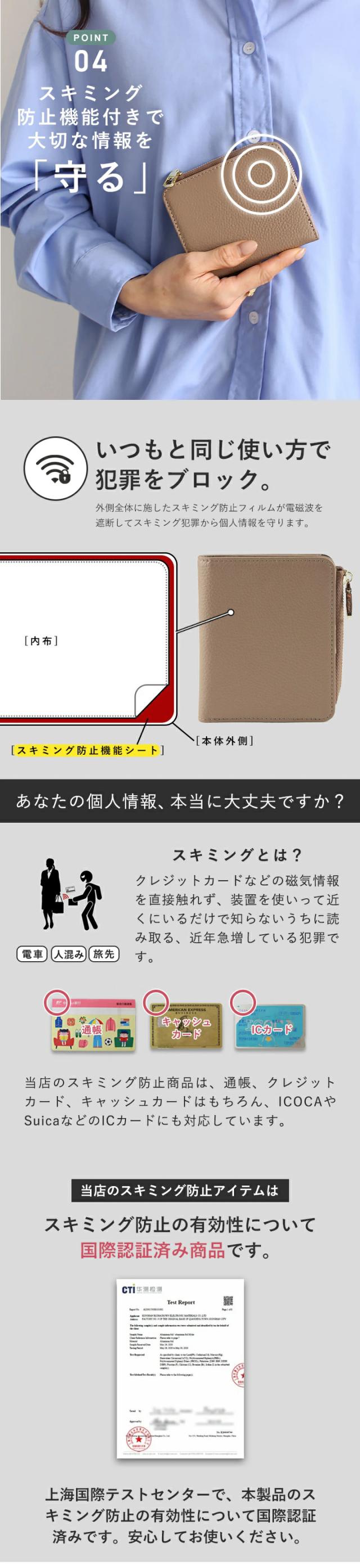 カード入れは最大8枚まで収納でき、スキミング防止機能も付いているので安心◎