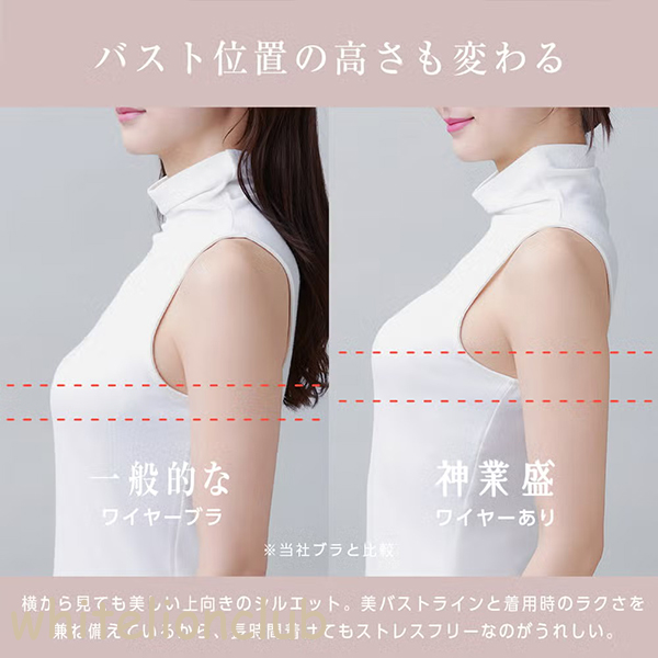 「存在感0ワイヤー」を採用。ワイヤレスのような着け心地ながらも、しっかりバストアップが叶う。