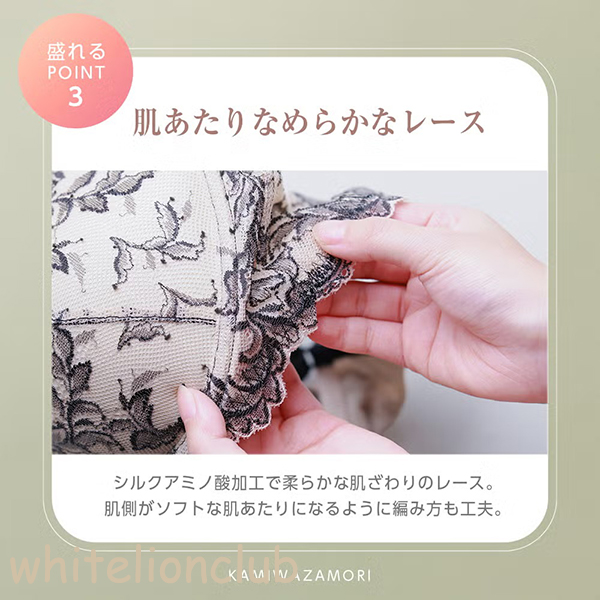 かわいいだけじゃない!シルクアミノ酸加工で柔らかな肌ざわりのレースを採用。