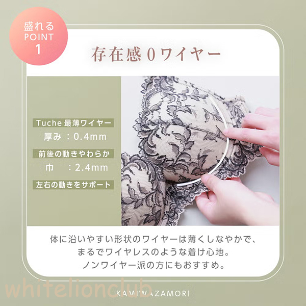 ワイヤー入りだから、横広がりせず、着けたときの谷間が続きます。