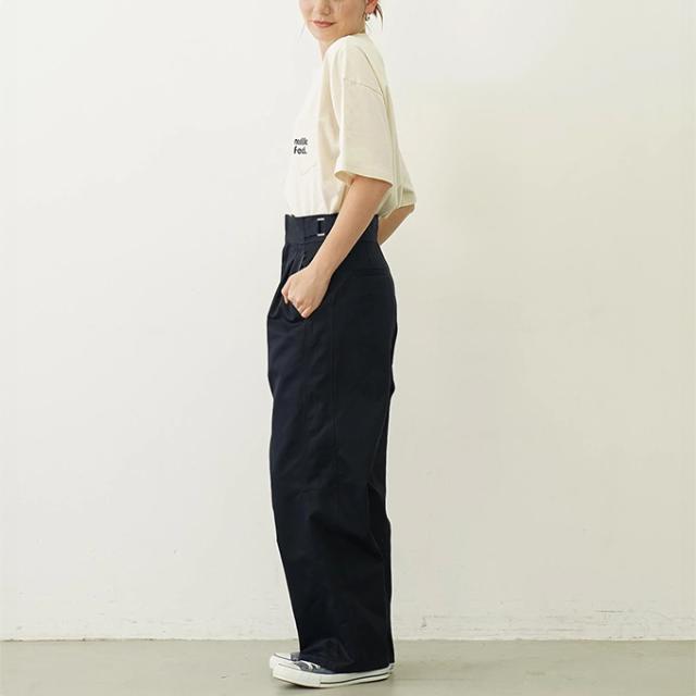 身幅がゆったりとしたシルエットで、タックインもアウトもどちらの着こなしも決まります。