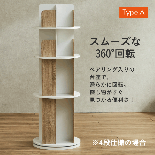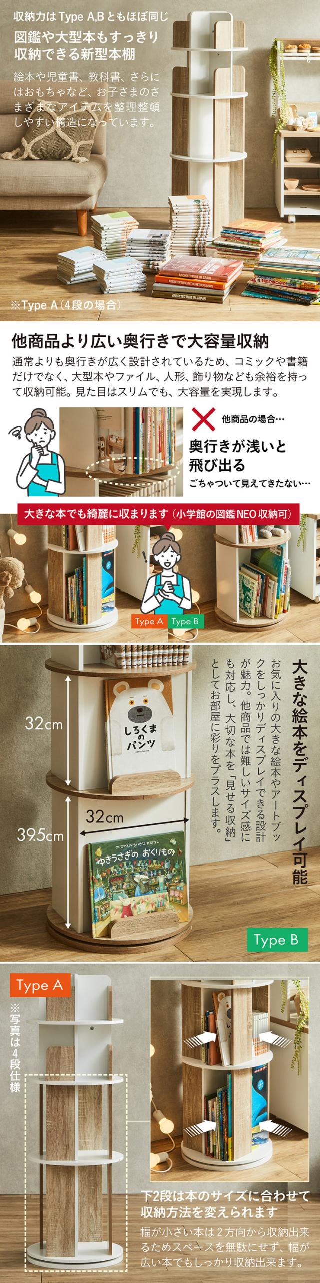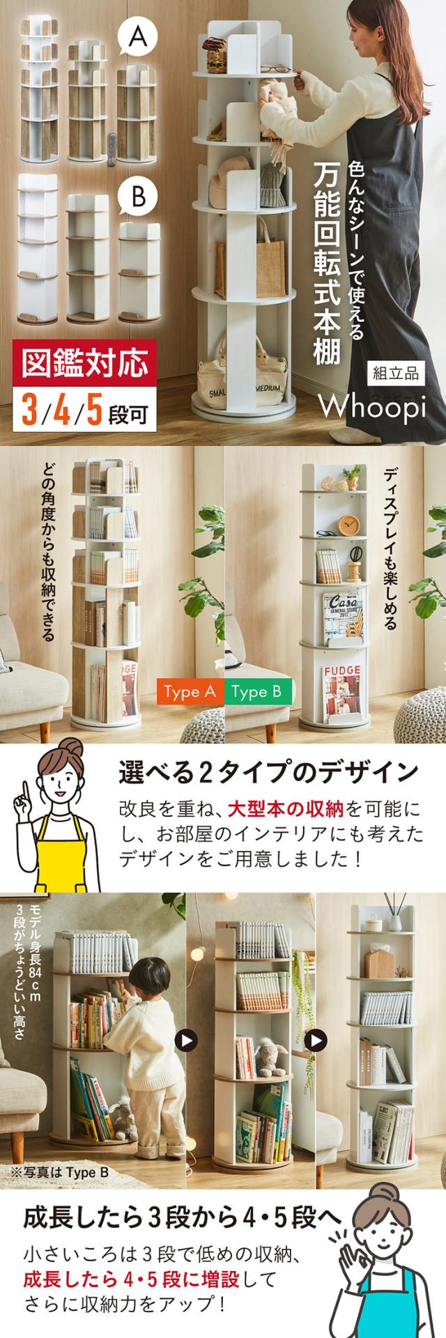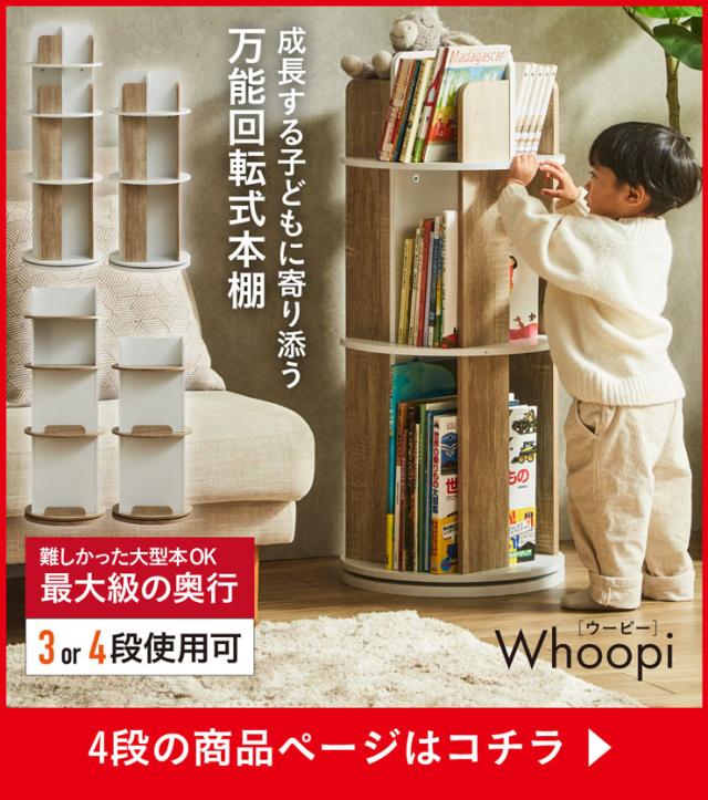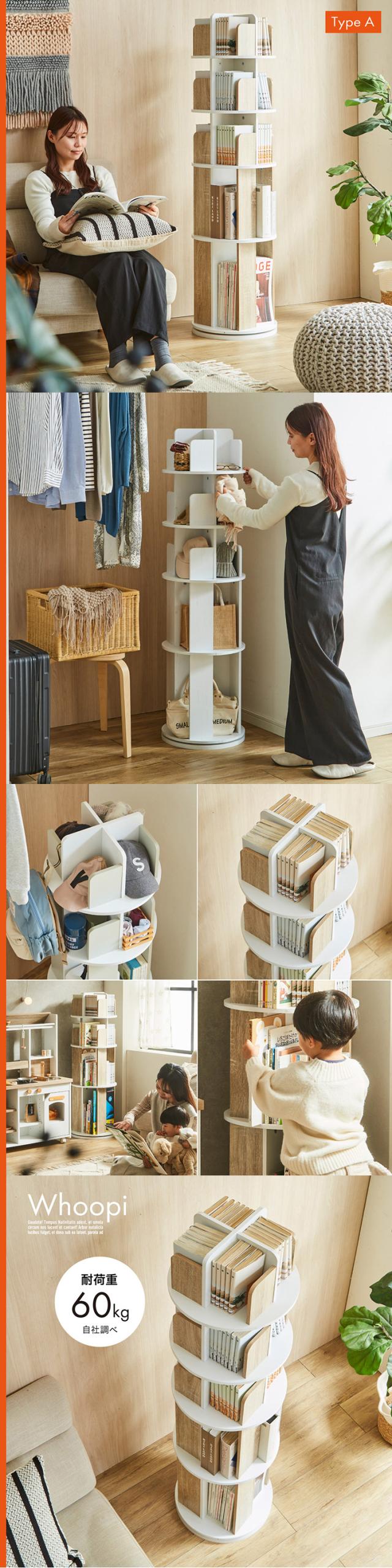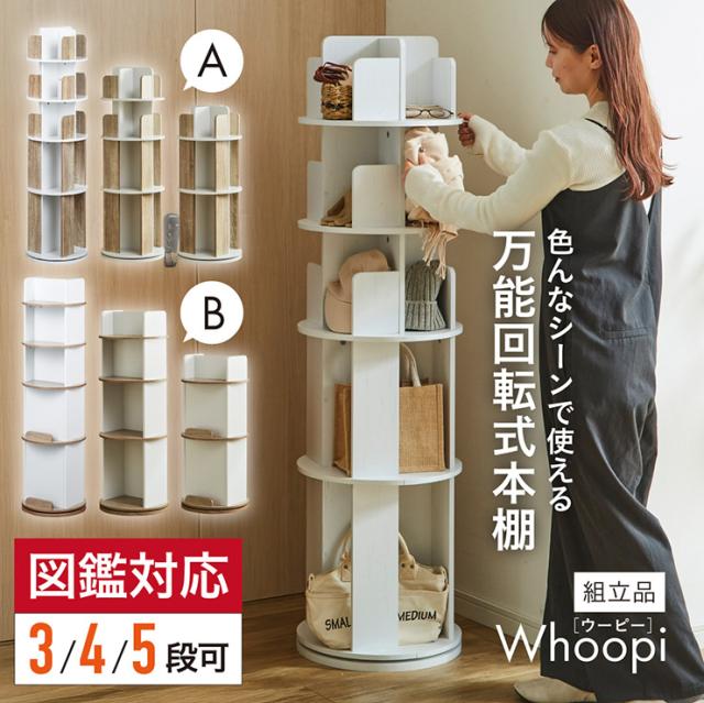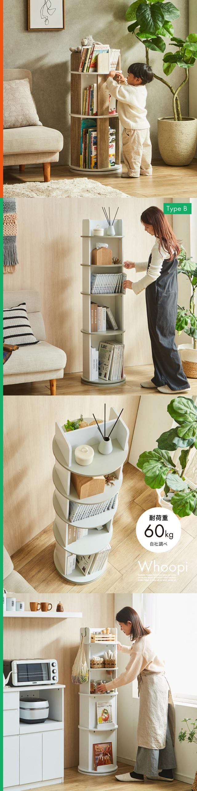 【図鑑対応】絵本棚 絵本ラック 回転 スリム 大容量 コンパクト 5段 Whoopi(ウーピー) 2タイプ 3色対応 おしゃれ 木製 本棚 収納棚 収納ラック 回転式ラック 回転式 ラック シンプル 省スペース ディスプレイ 絵本 本 雑誌 子供