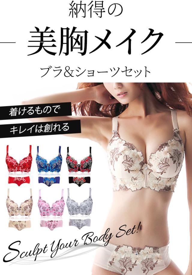 ブラジャー ショーツ セット \新作/ 脇高 補正 育乳 脇スッキリ 脇高ブラ 脇肉スッキリ 補正ブラ 綺麗 きれい 可愛い かわいい セクシー ブラック ベージュ ピンク レッド ブルー 黒 赤