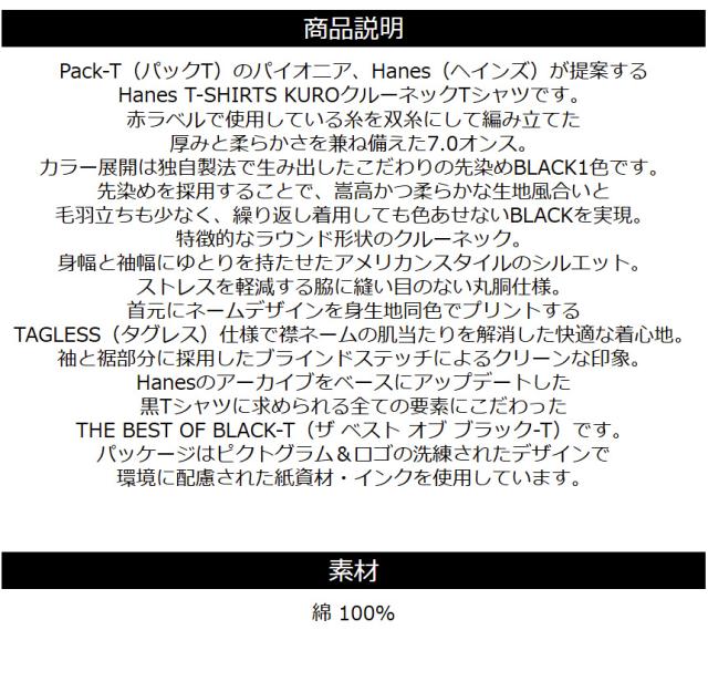 Hanes KURO ヘインズ 黒 クロ tシャツ メンズ 半袖 パックt 肉厚 厚手 綿 コットン 7.0オンス 7oz ホワイト HM1-B201 【B3-1418】 送料無料 通販A3