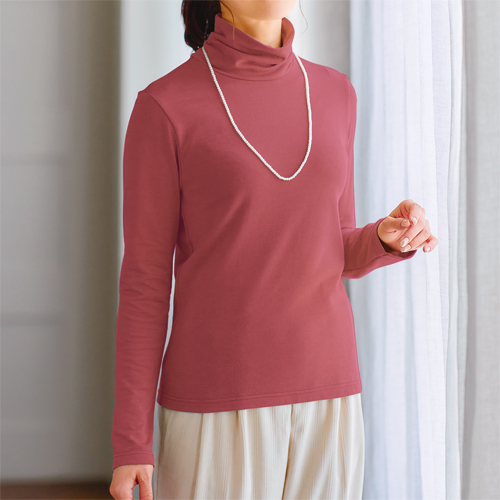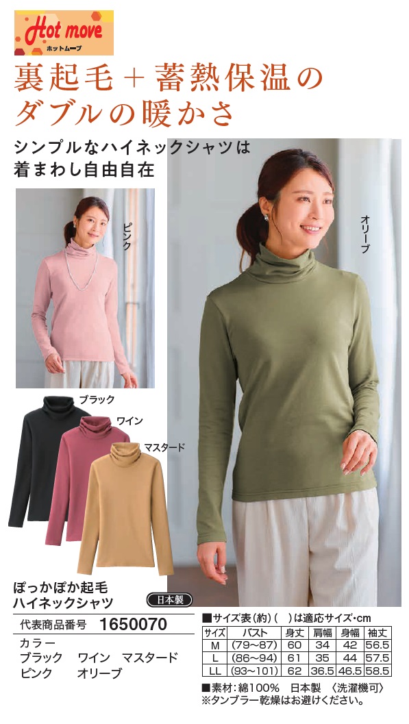 日本製 ぽっかぽか起毛ハイネックシャツ 全5色 ハイネック カットソー 裏起毛 長袖 あったか素材 レディース 婦人服 ミセス シニア 女性 ブラック ワインレッド イエロー ピンク グリーン 黒 赤 黄色 桃色 緑 無地 シンプル シニアファッション 40代 50代 60代 70代 80代 90代 母の日 お母さん おばあちゃん 秋物 冬物 秋冬